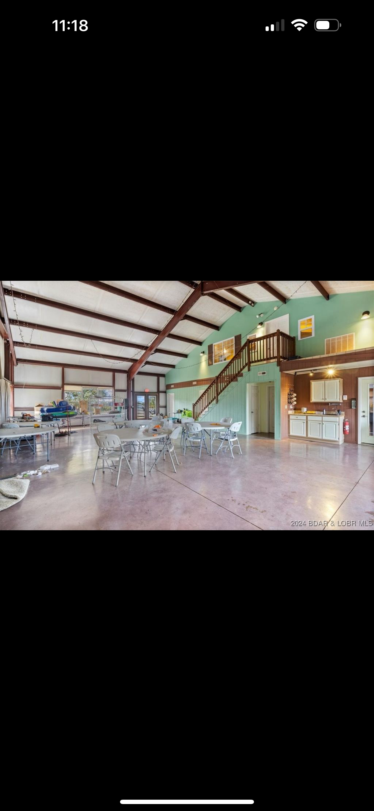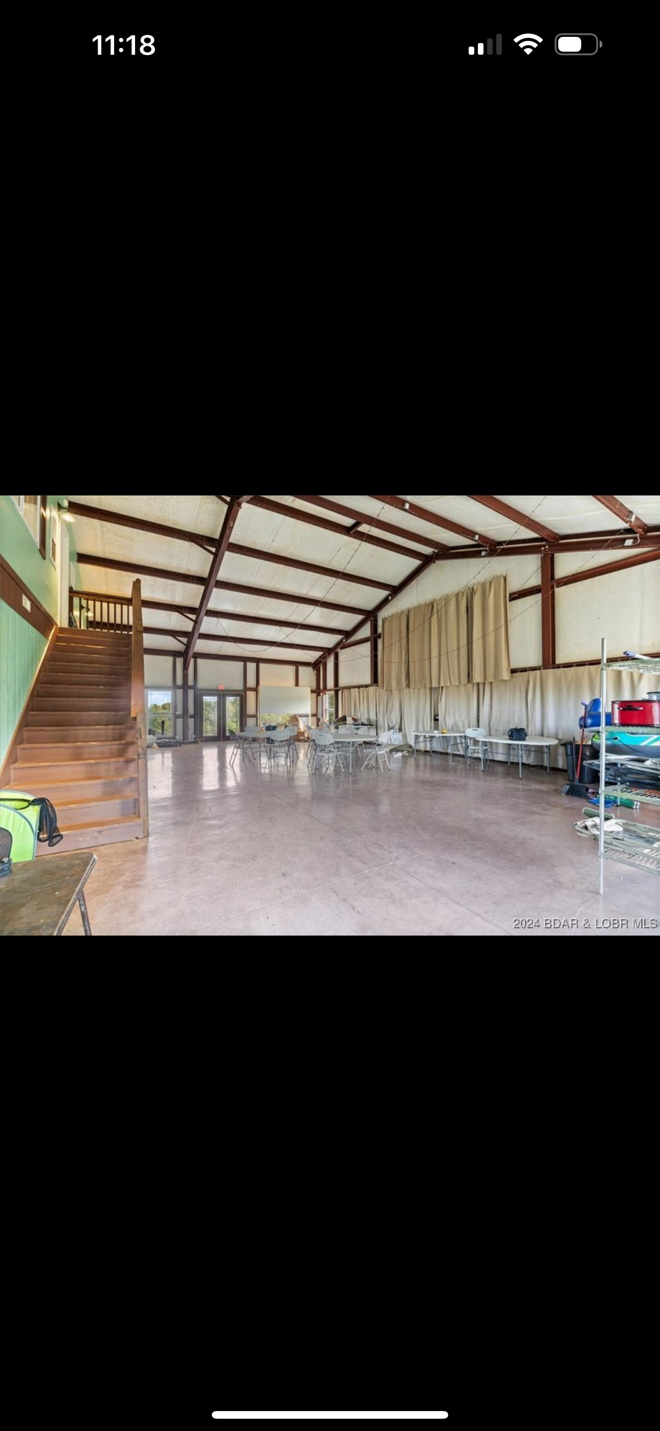 Welcome to your new home located quietly out of the way and off the beaten path in Macks Creek, Mo. Just a short 15min drive from Camdenton, Mo. This 5bd, 3full & 2 half bath 5600sqft Red Iron Barndo sitting on over 40ac can be yours today. One of its unique features is the integrated 1400sqft banquet that comes complete with men’s & women’s bathrooms with showers, although all apart of the same building it has its own separate entrances with separate locks both from the outside and inside the home, so you will always maintain full privacy. Other unique features include a Private 110yd Gun Range and a 1500sqft shop. Abundant deer & turkey population, currently property under yearly transferable hunting only lease.